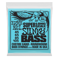 Le corde per basso a scala super-lunga Slinky sono avvolte così da creare un suono brillante e bilanciato. Pensate per i bassi con scala da 35". La lunghezza della corda è di 53" (134,6 cm) e si assottiglia a partire da 38 1/4" (97,4 cm). Ogni corda viene prodotta con le migliori materie prime nella meravigliosa Coachella Valley nella California meridionale. La lista del endorser delle corde per basso Ernie Ball Slinky include alcuni degli artisti più venduti al mondo. Diametri: .045, .065, .085 .105